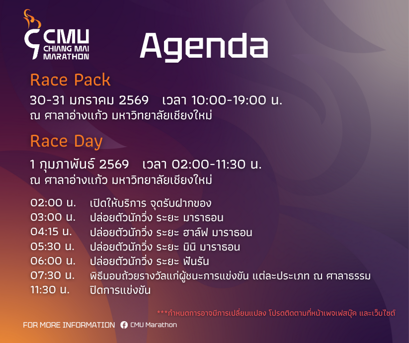 กติกาการเข้าร่วมกิจกรรมและการแข่งขัน CMU Chiang Mai Marathon 2026 (ONSITE)